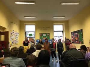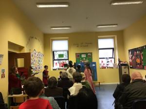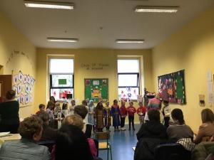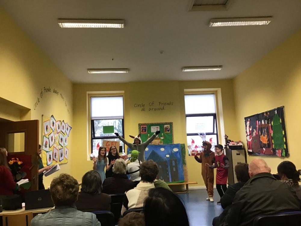The Christmas Concert here in the school was a great success. Ms. Fallon's students performed Toby's Drum, Mr. Forde's students were trying to wake Sleepy Santa, while Ms. Maher's students gave a wonderful production of Shrek! We were taken back by the generosity of of school community in providing hampers for the fundraising raffle also, which raised much needed funds the school. Thank you.