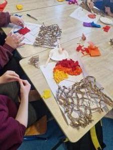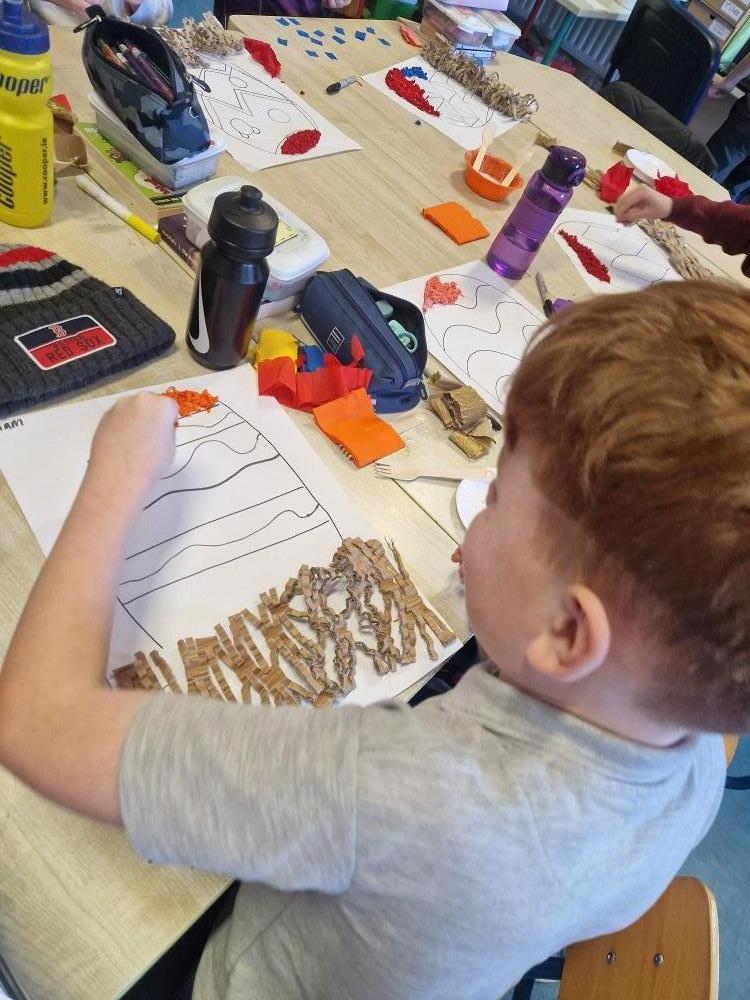 Mr. Forde's classroom have been busy working on these Easter Eggs as part of the Fabric and Fibre strand in art.