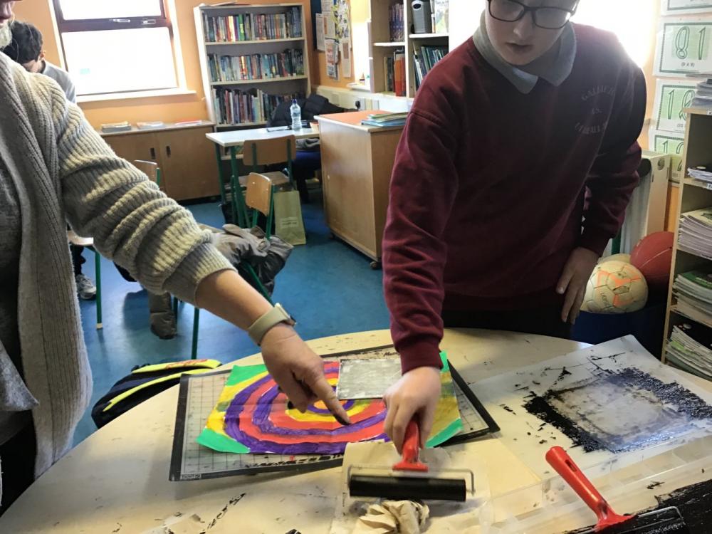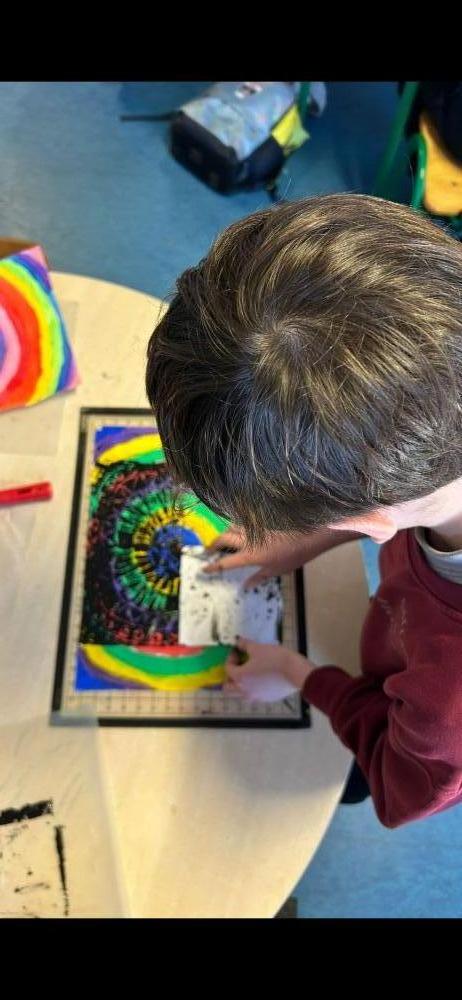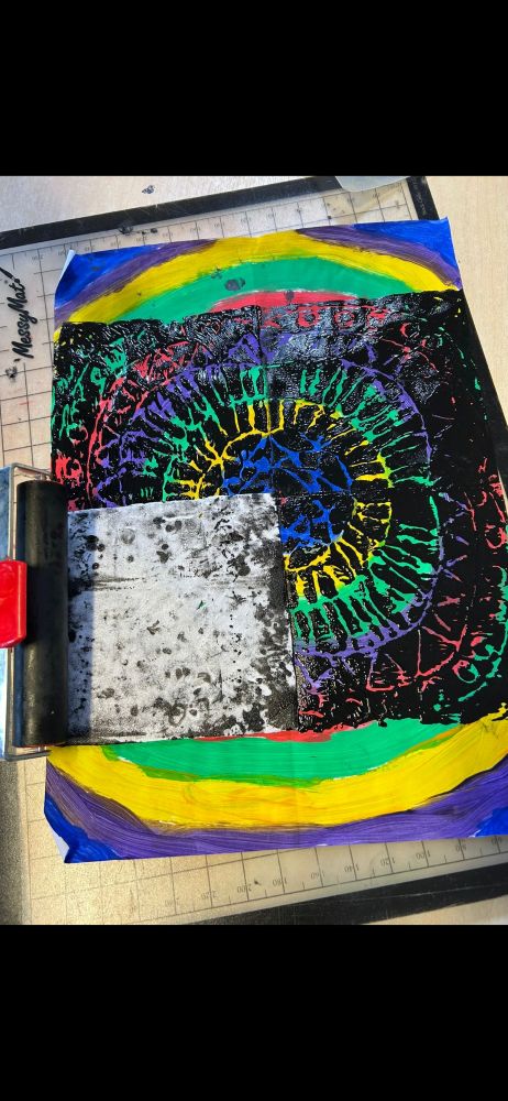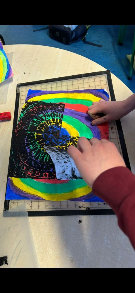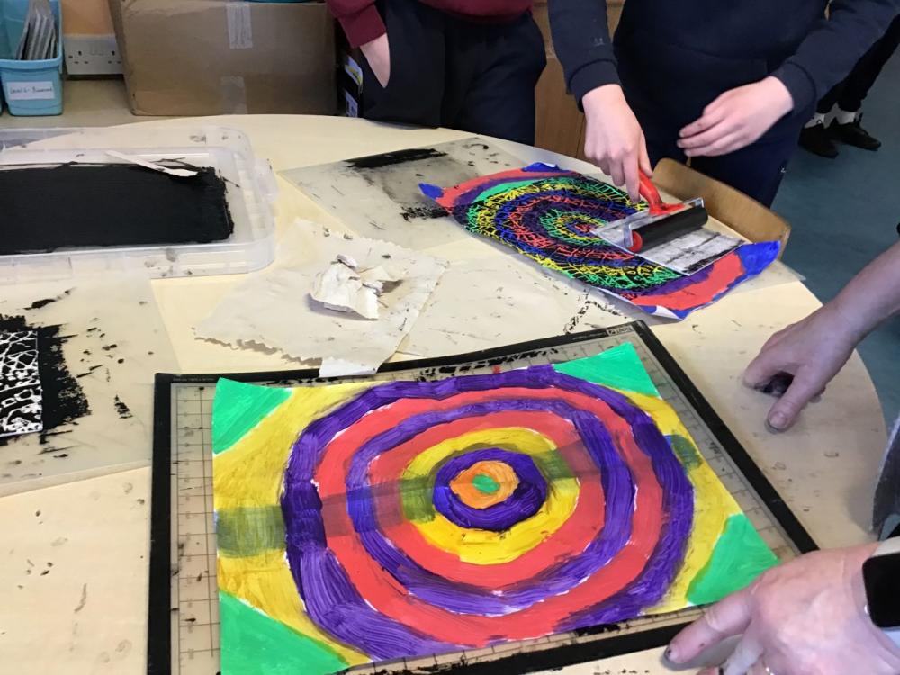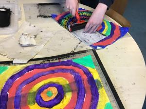 Ms. Maher's classroom were learning about relief printing in art. They created their own printing blocks using styrofoam and them produced this wonderful artwork.